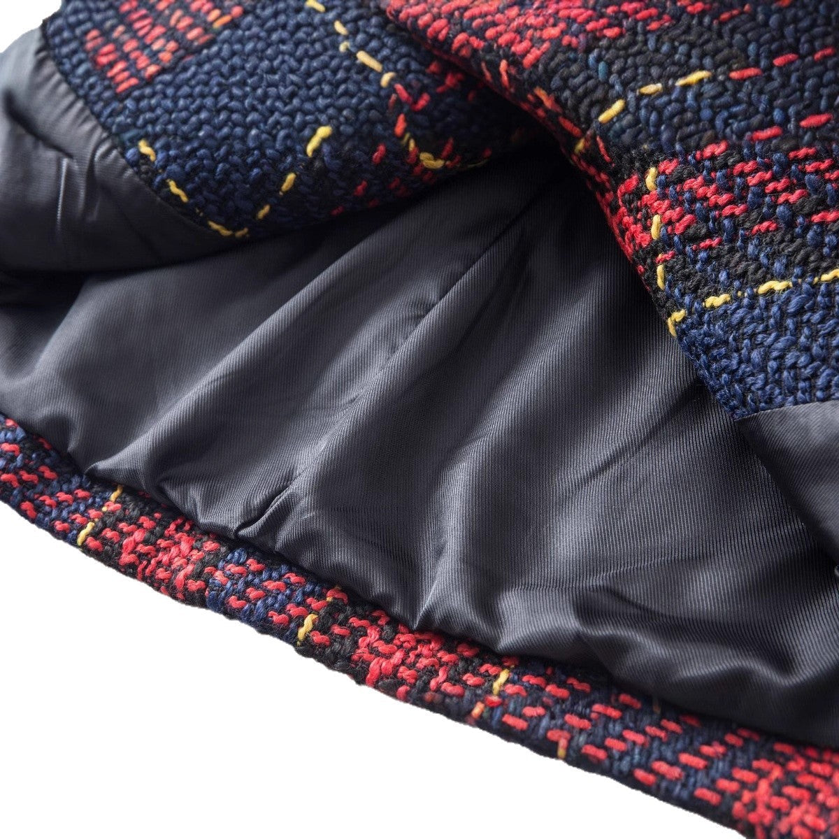 Step into classic sophistication with the Rose Retro Chic Tweed Blazer, crafted for women who appreciate structure, style, and quiet luxury. Its rich navy base woven with red and gold detailing creates a bold plaid pattern that stands out effortlessly. Finished with polished gold buttons and a flattering feminine silhouette, this blazer instantly elevates any outfit.
